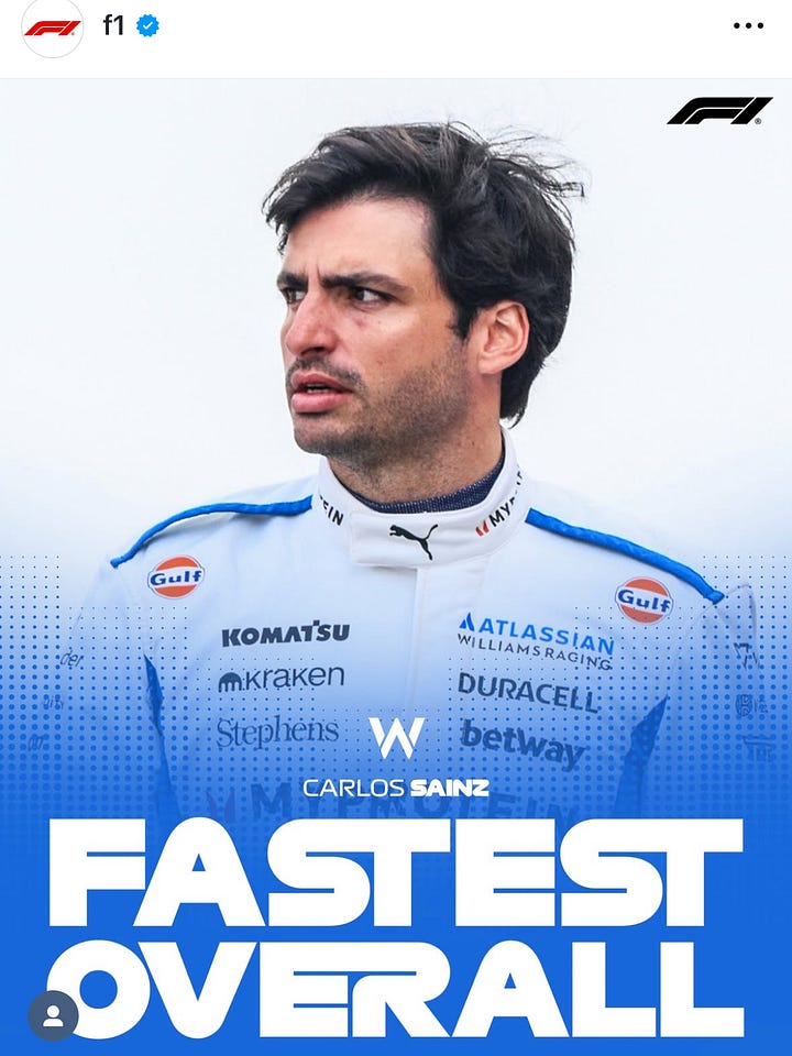 Hot takes: I’m gonna be honest, My hot takes aren’t novel but every week I try to draw a piece from that race that sticks out to me with a short prose. Last season I garnered some attention on threads with these hot takes because I offended the F1 bros. I’m hoping Substack is a different world where you can enjoy my art and opinions.